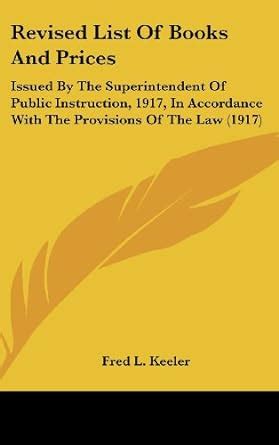 Read Revised List of Books and Prices Issued by the Superintendent of Public Instruction Epub By Click Button. Revised List of Books and Prices Issued by the Superintendent of Public Instruction it’s easy to recommend a new book category such as Novel, journal, comic, magazin, ect. You see it and you just know that the designer is also an author and understands the challenges involved with having a good book. You can easy klick for detailing book and you can read it online, even you can download it